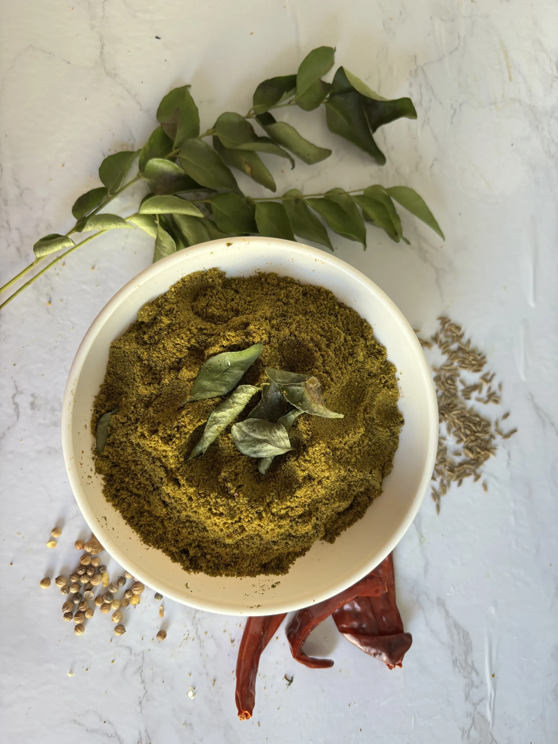 Curry leafs, blackgram, bengal gram,