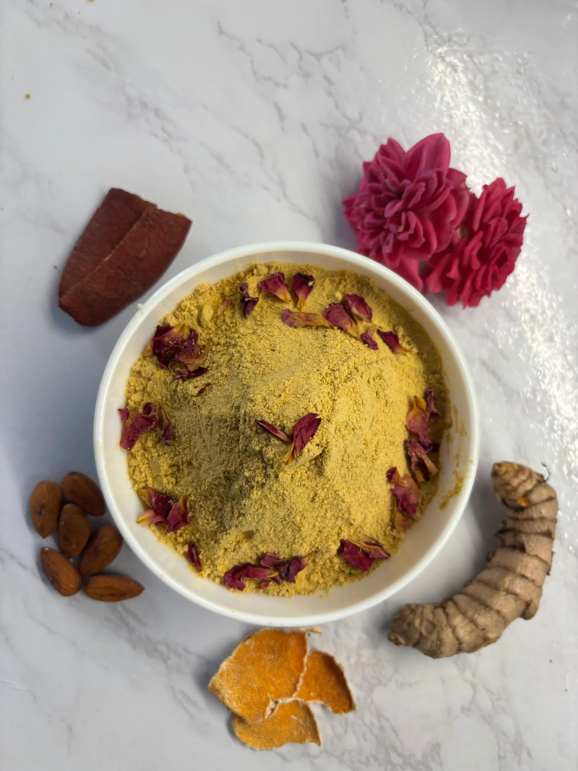 Finely blended herbs, pulses and roots such as turmeric, neem, sandalwood,